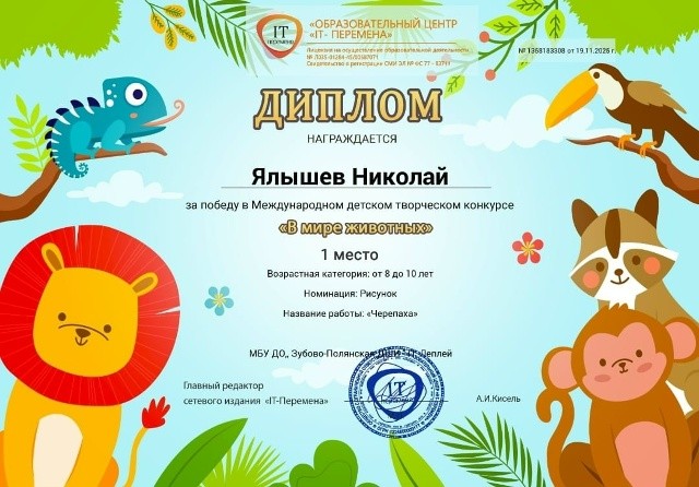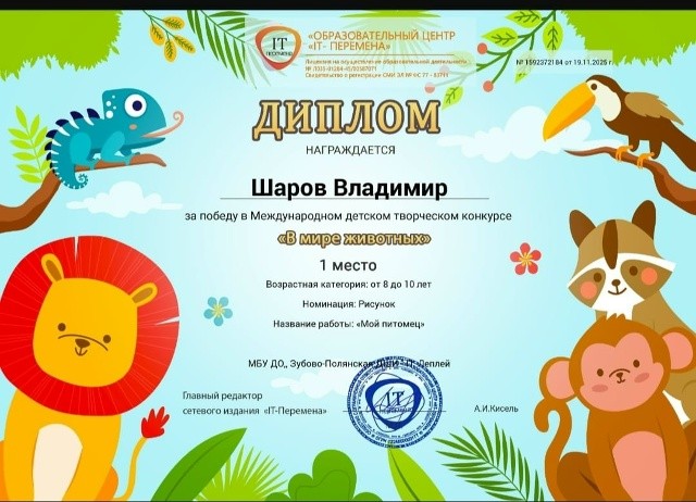 В номинации"Своих не бросаем."Награждена дипломом победителя. Преподаватель Матвеева Юлия Александровна.