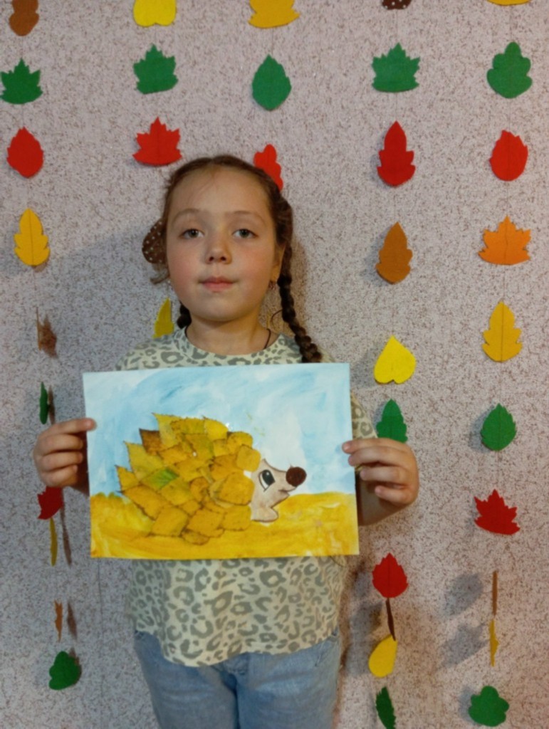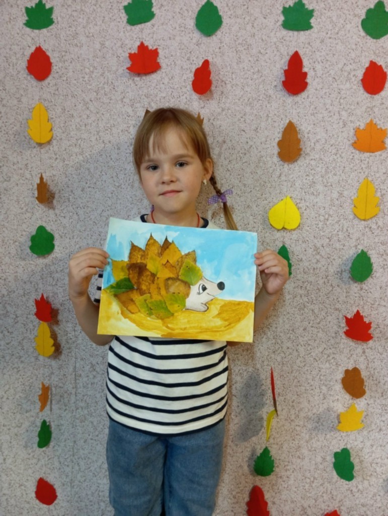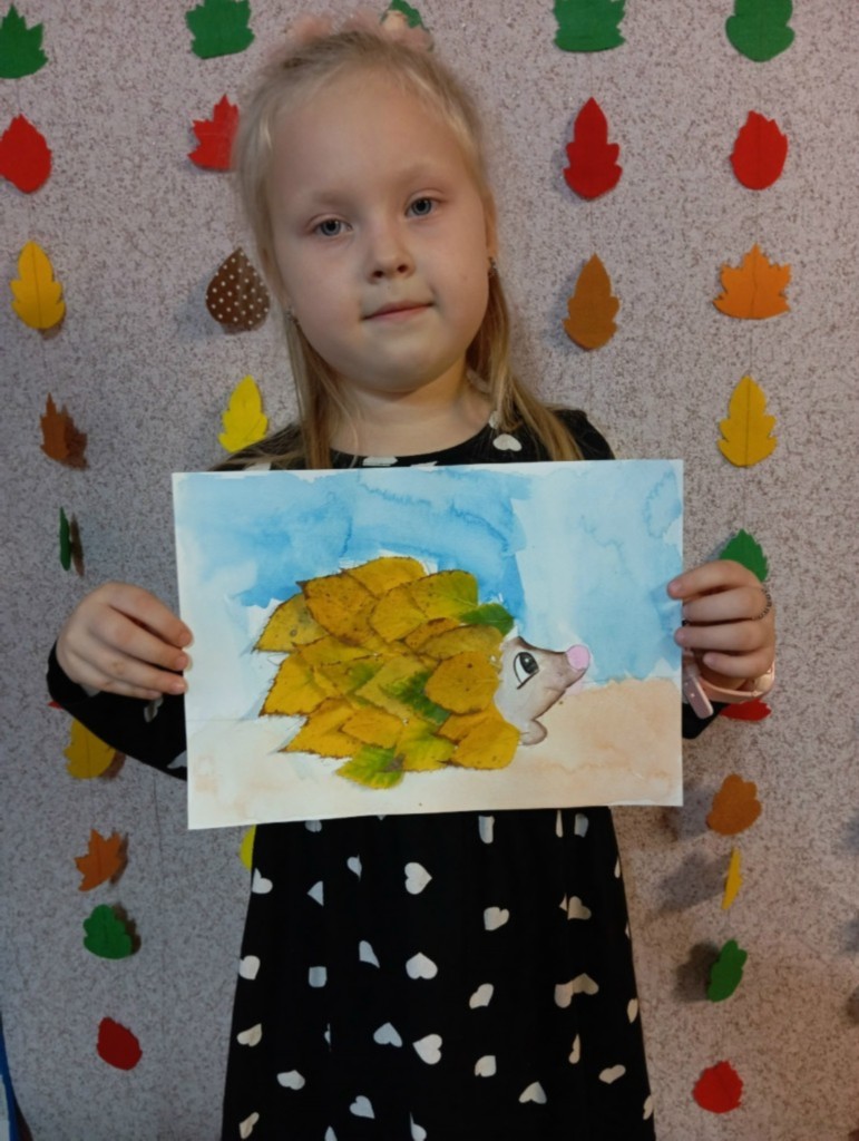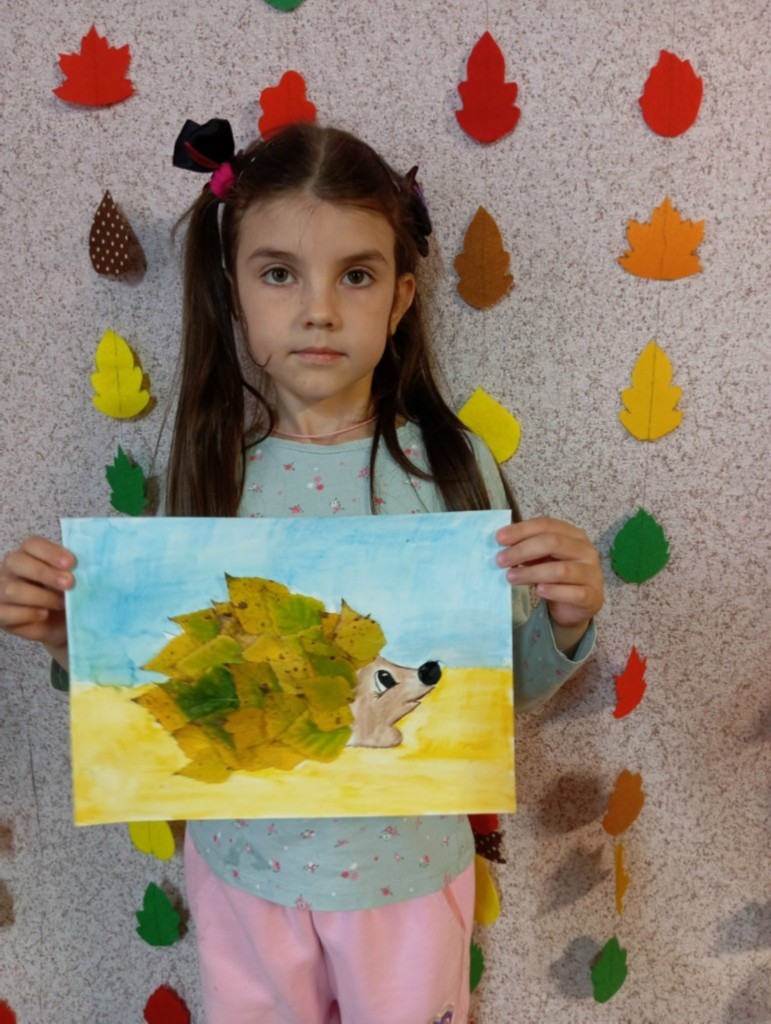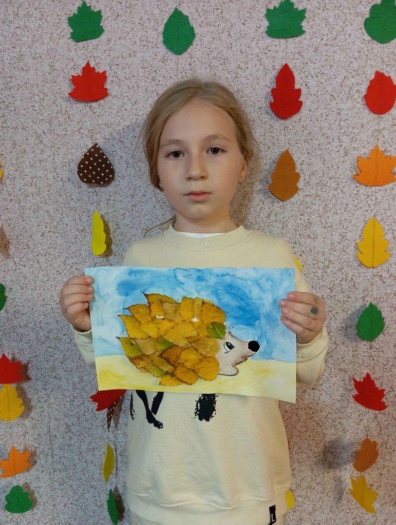 Дети познакомились с разнообразием осенних листьев и их цветами. Мы обсудили, какие животные ассоциируются с осенью, и выбрали ёжика в качестве главного героя нашего творчества. Затем перешли к практической части. Ребята нарисовали контуры ёжиков на ватмане и начали приклеивать листья, создавая колючую спинку. По завершении занятия мы устроили мини-выставку, где каждый мог показать свой ёжика и рассказать о том, как он его создавал. Преподаватель: Титова О. И.